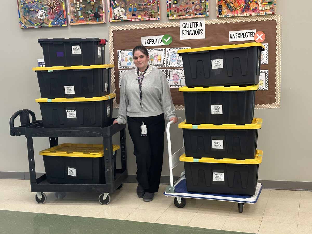 Legacy Bible Church provides weekly weekend food bags and supports Shelby’s teacher snack closet, which helps students who may not have snacks during the day. She also organizes monthly snack bags for teachers to distribute and coordinates visits from programs like the Colgate Van for free dental care.